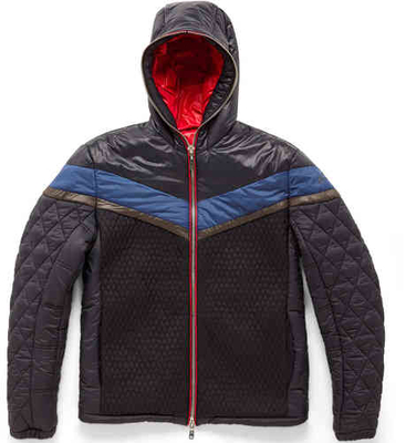 Tyngre quiltad huvor puff jacket Blanda mönster quiltning och paneler Botten till topp-av-huva dragkedja fram intern märkning och broderad ärm logotyp 100% PA (Nylon)