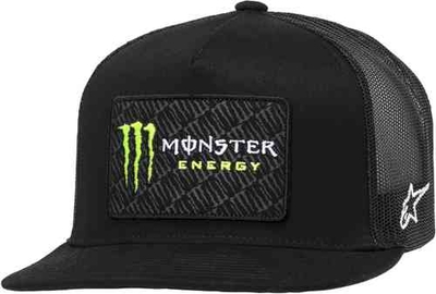 Alpinestars monster Champ Trucker mössa Front Monster Energy broderad patch, sida broderade Alpinestars logotyp. Inre och bakre märkning. Funktioner: Flat Bill Trucker med strukturerad krona Snap tillbaka Mesh rygg tyg