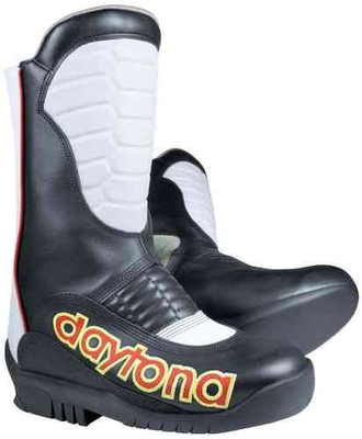Daytona Speedway Evo SGP Motorcykel Stövlar Speedway motorcykel boot med unika Daytona® 2-skal säkerhetsteknik. Funktioner: särskilt rivtålig och mjuk kohud inuti förstärkt med Kevlar-Carbon-tyg, förseglat med plast shin vakt, vadderad inuti elastisk zon på vristen för bättre rörlighet elastisk dragkedja i ryggen, täckt med läderremsa och stängd med kardborreband höger plastförstärkt innersula med varmförzinkad ståldämpningsbeständig, men ändå lätt att rulla av särskild ensamrätt vänster platt sula lämplig för stålskor det centrala säkerhetselementet: det vridtåliga aramidhårda skalet stötdämpande latexskumkuddar för kalv, fotled och häl bärande gångjärnskoppling stretch-elastisk zon för rörlighet svettabsorberande mjukt textilfoder (80% polyamid, 20% polyester) i hela skon anatomiskt formad boll häl säng och klimat innersula axelhöjd: ca 29