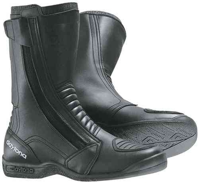 Daytona Toper Grundläggande mc-stövlar Touring stövlar med bra säkerhetsfunktioner till ett rimligt pris. Funktioner: ko dölja läder i framfoten området ingen skav på grund av stoppning sidodragkedja utanför justering med kardborreband mycket elastiska zoner vid vristen och hälen fotform klimat innersula, anatomiskt formad mjuk gummisula shinbone förstärkning av plast byta förstärkning axelhöjd: ca 29 cm storlekar: 36-49