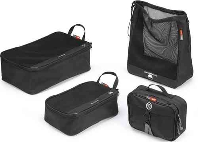 GIVI Reseset 4-bit GIVI reseset bestående av: Rektangulär förvaringsväska: 2 mjuka påsar i olika storlekar (medelstora och stora), med strömförsörjning i locket och bärhandtag för enkel transport. Tvättpåse: en mjuk väska med dragsko stängning och mesh på sidorna för att ge ventilation för kläder. Kulturväska: en behållare för kulturföremålen med en krok för att hänga upp dem och en löstagbar ficka för flaskor. Funktioner:rektangulära förvaringspåsar: bärhandtag för transport meshtyg som andas Tvåvägs dragkedja Tvättpåse: Dragsko stängning meshtyg som andas Necessär: externa krokar för att hänga upp påsen inre mesh ficka inuti med PVC, dragkedja och små fickor Avtagbart nät med krokar för att hänga en flaskväska GIVI-logotyp Innehållet: 1 x GIVI förvaringspåse, rektangulär (medium: 6 liter) 1 x GIVI förvaringspåse, rektangulär (Stor: 15 liter) 1 x GIVI tvättväska 1 x GIVI necessär