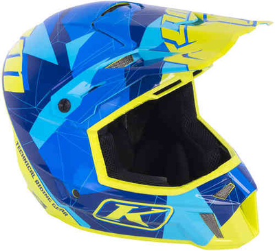 Klim F3 Cross Helmet Blue Camo Motorcykel Hjälmen Svart Gul S