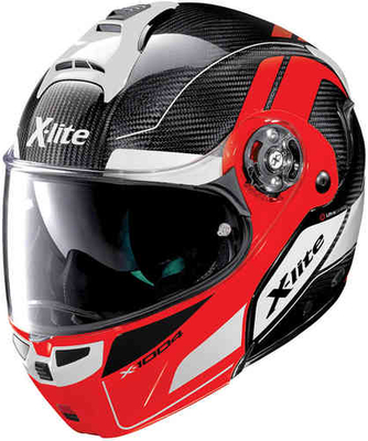 X-lite X-1004 Ultra Carbon karismatisk N-com hjälm Detta är X-lite exklusiva hög kolhalt version av flip up hjälmen. Dess minskad vikt och kompakt volym (tack vare den kol-rika konstruktion och tillgången på tre yttre skal storlekar), dubbel P/J homologation, VPS solskydd, effektiv TV Touring ventilations system, exklusiv Dual Action Chin Guard öppningsmekanism, Microlock2 dubbel-spak retention system med Mikrometerjustering, Carbon passande racing erfarenhet inre komfort stoppning (med en innovativ netto konstruktion) och set-up för N-com kommunikationssystem gör X-1004 ULTRA CARBON den mest exklusiva flip up hjälm för de mest krävande av motorcykel turister.Funktioner: Extra stort synfält på grund av 'ultrawide' visor (inklusive snabb växling alternativ, Dual-Action
