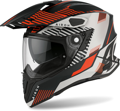 Choose your route, Commander will adapt to any scenario. Its innovative design lets you easily change its nature, passing from the peak & visor combination for use on any terrain, to the naked mode without peak & with the visor for road speed. To test yourself in an arduous off road route, you can change it to use it without its visor. All the latest innovation made by Airoh in terms of design & technology come together in the Commander, to redefine the standards & achieve performance levels that others cannot match: HPC (High Performance Composite), Extra Wide visor with integrated Sun Screen Visor, Pinlock® lens included, aerodynamic peak, three-zone ventilation, Bluetooth-ready, outer shells in two sizes & a range of striking graphics. Weight 1430 gr. +- 50 gr. Material HPC (High Performance Composite) Ventilation Front Vent Chin vent Top vents Retention system Double-D Ring Inner lining Removable & washable, hypoallergenic inner lining Hypoallergenic Visor Extra-wide vision Scratch resistant UV resistant Block system Antifog position Homologation ECE 22-05 HPC (High Performance Composite) The combination of composite materials with the prepreg technology allows Airoh to achieve high performance products in terms of resistance, without disregarding the lightness. Note Please be aware, as long as nothing else is written in the item description: All helmets will be delivered only with the ECE certification by default, even if it is shown differently. all helmets that have a visor will be delivered with a clear visor, even if it is shown differently.