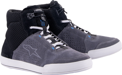 Casual styling & protective features make the Chrome Air Riding Shoes a great option for any urban rider. Featuring a modern silhouette with contemporary styling, the Chrome Riding Shoes are constructed with a combined material upper in split suede & mesh for optimized airflow & are equipped with integrated ankle protectors, with the shoe’s qualitative & durable Ortho Lite® insole delivering enhanced comfort & breathability. The sole construction is based on the latest Alpinestars advanced urban shoe development to provide a perfect casual comfort with the guarantee of a high level of protection thanks to the Alpinestars Transversal Protection Frame (TPF), which is made from lighter PA materials, while an intuitive elasticated closure at the top of the shoe helps to facilitate the fast closure of the shoe & hold the lace loops & avoid the flap or get hooked on foot rest. Features Lightweight upper combining split suede & canvas for durability & comfort Dual density ank...