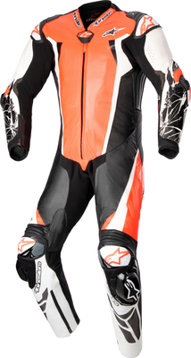 The Racing Absolute v 2 is a top-of-the-line professional racing suit that incorporates the same lightweight, advanced materials & technologies worn by the fastest Moto GP & World SBK riders on the track. In addition to full kangaroo leather construction with double layers of kangaroo leather in the most abrasion-prone areas such as the elbows, forearms, buttocks, hips & back, the Racing Absolute v 2 also features Kevlar®-reinforced stretch panels in the crotch, inner arms & underarm area. The bonded Kevlar® mesh provides increased cut, tear & abrasion resistance, as well as greatly reduced heat transfer to the rider s body from friction when sliding on the asphalt. Another important advance in material technology in the Racing Absolute v 2 is the use of Alpinestars Composite Stretch Technology, A-CS® Tech. A-CS® Tech is integrated throughout the suit on the sides of the torso, shoulder blades & upper knee area, replacing the original pleated leather inserts. The A-CS® Tech materi... ...