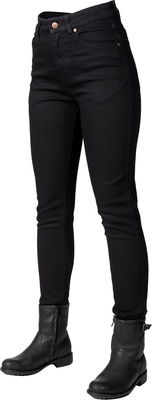 Bull-it Eclipse women s stretch jeans. Features Slim fit Single Layer New recovery yarns for stretch retention improves fit and comfort Jet black finish with new patch design on synthetic leather Flat Bull-it logo rivets and buttons for the front and YKK Zips Traditional 5 pocket denim jeans design Shower resistant finish Includes EN 1621 approved Level-2 knee and hip protectors, AA rated protection High performance cut and tear strength, AA abrasion resistance Lower thermal conductivity reduces chances of friction burns