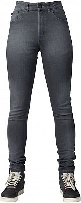 Bull-it Elara, grey stretch jeans for women. Features Slim fit Traditional 5 pocket denim jeans design Single layer High performance cut & tear strength, AA abrasion resistance New recovery yarns for stretch retention improves fit & comfort Water-repellent layer that lets little or no rain through Flat Bull-it logo rivets & buttons for the front & YKK Zips Light wash grey finish with new patch design on synthetic leather