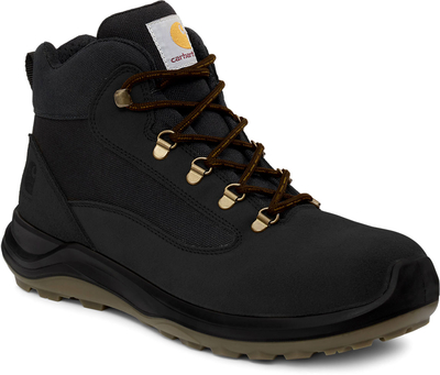 Down-to-earth shoe manufacturing: The durability, quality and craftsmanship that Carhartt stands for have been translated directly into the work shoes so that you can walk through your working day safely, comfortably and with dry feet. Features Regular fit Aluminum safety toe cap Rugged Flex - Facilitates movement Hydrotreated suede and textile upper Mesh lining Laces Coated iron eyelets and lace rings Removable, fully cushioned footbed with thermoregulating, antibacterial and antistatic properties Compressed textile penetration protection plate Injected polyurethane midsole Compact polyurethane outsole with antistatic, oil-resistant and slip-resistant properties (SR) Lightweight stability shank minimizes fatigue Certified according to EU standard EN ISO20345:2022 (S3L) AS/NZS