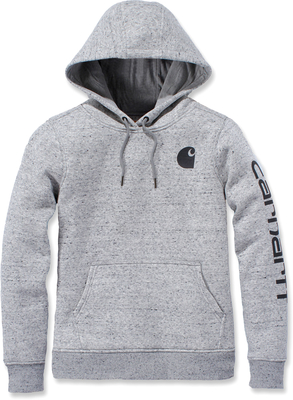 This cozy hoodie for women is made from solid fleece fabric & soft lining for comfortable wear. It has a loose fit, with Carhartt logo on the sleeve. Features Relaxed fit, comfortable fit Clarksburg fleece Three-piece hood with drawstring closure Long sleeves Front handwarmer pockets with concealed media pocket Stretchy, elastic-reinforced rib-knit cuffs & waistband Carhartt logo printed on left sleeve & Carhartt ′C′ on chest