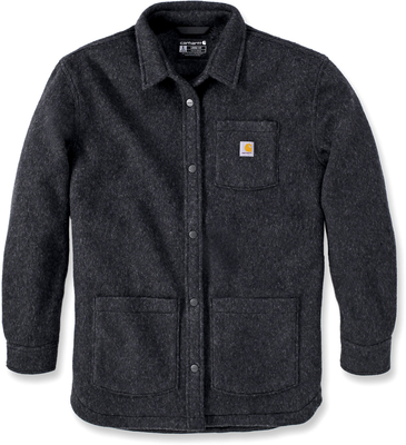 Fleece overshirt When the day starts chilly, slip on this Carhartt women s shirt jacket to expand your comfort zone. The fleece blend has a wool-like feel, & is suitable for both casual days & work. It s cut loosely for ample freedom of movement & is easy to layer. Three pockets keep everyday essentials close at h&. Features Loose fit 9 oz/yd²