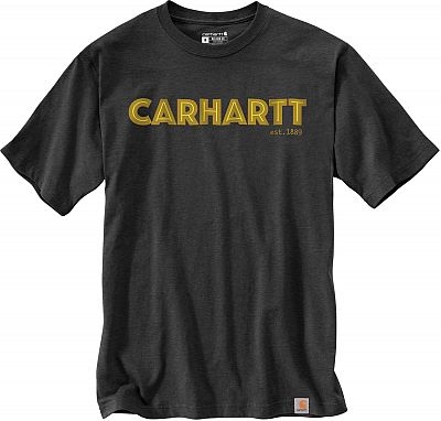- 229 gr./m² Short sleeve Rib knit crew neck Graphic printed on chest Carhartt label sewn on hem Care recommendation Machine wash at temperature 30° C Do not dry-clean Tumble dry on lowest setting Cold iron