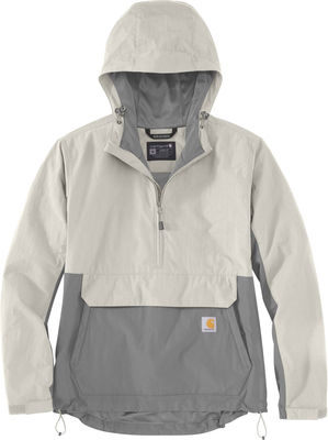 Lightweight anorak with water repellent surface Gray skies? No problem. This Carhartt anorak for women keeps you moving in cool temperatures & light rain. It has a loose cut that makes it easy to wear over sweatshirts & hoodies. & once the clouds have cleared, you can pack it in its own pocket for convenient storage. Features Loose Fit 3 oz/yd²