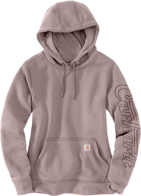 Sweatshirt with graphic & water-repellent finish When it rains, this Carhartt hooded sweatshirt for women keeps you dry. The mid-weight cotton blend resists light rain & provides warmth, so you can focus on the work at h&. The loose fit sits closer to the body than our wide fit, but still offers a little extra room to move around. Features Relaxed Fit 10.5 oz/yd²