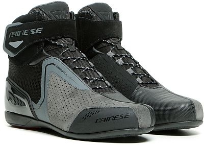A ventilated and certified sports shoe, it is made according to Dainese protection standards. Comfort and ventilation, on all urban routes. This certified shoe represents the best of Dainese sports DNA. Well ventilated, it ensures an excellent level of protection during everyday activity. Features Gear shifter guard Multi grip outsole Reflective inserts Soft inserts Closing with laces and strap for added security Cowhide leather upper Reinforced TPU heel structure Rigid inserts on ankles Shoes certified to Cat. II - EN 13634 Standard TPR inserts on the toe Mesh liner Perforated upper