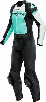 Women s Dainese Mirage two-piece motorcycle suit made with premium Tutu cowhide & ergonomically designed to best suit a woman’s body. Suitable for sport use, it is specifically optimized for road riding. Maximum protection is guaranteed by composite protectors at the knees, elbows & shoulders & soft Pro-Shape 2.0 protectors at the hips. It can be enhanced further due to the internal pockets where chest protectors can be inserted. The Mirage is equipped with removable & replaceable sliders at the knees & interchangeable aluminum plates at the shoulders: A distinctive Dainese technology designed to support & facilitate sliding in case of a fall, thus preventing the dangerous risks of rolling caused by grip on asphalt. The hump placed at the shoulders & neck has an aerodynamic function. For greater comfort while riding, the Mirage two-piece suit is equipped with wide S1 stretch fabric inserts on the inner arm, groin & back of the leg areas, as well as Nanofeel® lining with a silver ion antibacterial treatment. Features Women s two-piece motorcycle suit in cowhide with certified protectors, aerodynamic hump, & elastic fabric inserts 1 inner pocket Interchangeable knee sliders Side zip vents Reflective inserts on the back 1 Zip calf construction Temperature Breathable Nanofeel® liner with silver ion treatment Ergonomics Aerodynamic spoiler Collar with elasticated insert Materials S1 bielastic fabric Tutu cowhide leather Performance Composite protectors certified to EN 1621.1 standard on elbow & shoulders Composite protectors certified to EN 1621.1 standard on knees Pro-Shape: soft protectors certified to standard EN 1621.1 on hips