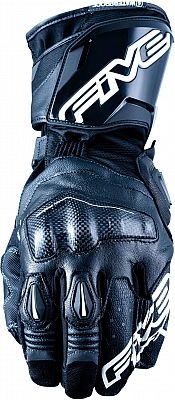 water-repellent stretch fabric 5_DRYTECH™ breathable, weatherproof membrane, partially bonded to the glove on the palm side Semi-rigid TPU Racing Cuff, emulating the RFX Race style ERGO PROTECH® one-piece carbon protective shell Mini-protective shells in soft TPE and comfort gussets on the index and middle fingers Hypothenar protective shell (palm slider) in TPR 3 mm foam reinforcement underneath the leather at the thenar and on the thumbs Outside seaming on the fingers Reflective elements on the index and middle fingers and cuff Dual closure system on the wrist and adjustable cuff with a Velcro® tab Internal Bemberg™ comfort lining Anti-twist accordion band between the ring and little fingers so your fingers don’t get pulled apart if you fall (a FIVE innovation) Clear Vision