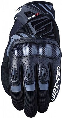 Features 4-way spandex stretch in combination with leather Carbon knuckle protector Double palm in synthetic leather Lycra finger contours TPR palm slider & TPR protectors on the fingers Neoprene cuff with velcro closure Touchscreen forefinger Pull-on lip