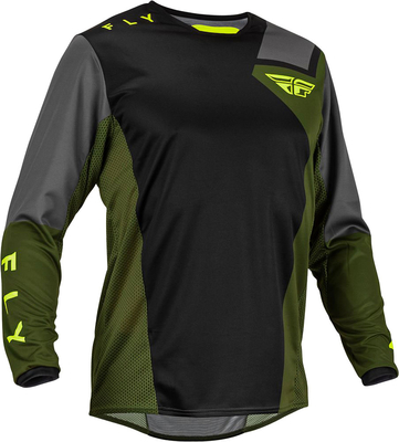 Fly Racing Kinetic Jet, Jersey, Color: Black/Olive/Grey/Neon-Yellow,