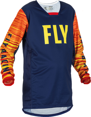 The Fly Racing Kinetic series blends form & function in a way unlike any other & its reliability is a testament to its durable construction. Features Tagless comfort-stretch collar with gusset Relaxed shorty elastic sleeve cuffs Multi-panel construction for maximum performance & comfortable fit Mesh ventilation helps dissipate heat at your sides & underarms Extended tail helps keep jersey tucked in Standard