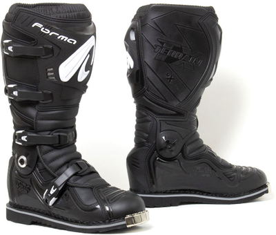 Outer features Synthetic material upper Specific MX compound rubber sole Stitched F.C.S. (Flex Control System) Injection moulded plastic protections Personalized rubber heat protector Adjustable velcro closure Replaceable/adjustable GH plastic buckles Steel toe cap Certified according to EN 13634:2017 Inner features Padded inner lining Polyurethane nylon reinforcements Soft polymer padding with memory foam I.N.&F.S. (Incorporated Nylon & Fiberglass Shank) midsole Anti-bacterial replaceable footbed with A.P.S. (Air Pump System) Standard Off-Road Fit, ergonomically designed for maximum foot sensibility & performance off-road riding, used in all adult off-road boots without separate inner boot Air pump system Air is pumped into the entire sole from a central point in the perforated A.P.S. footbed. The resulting air circulation keeps the foot cool & comfortable.