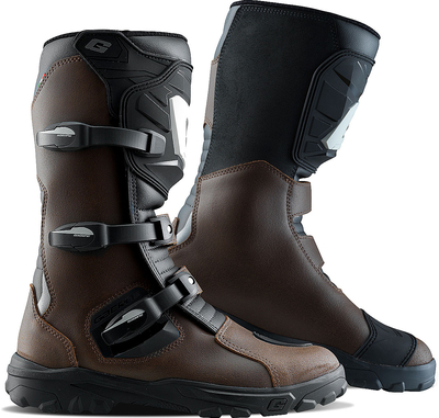 This All Terrain boot from Gaerne combines the features of a touring boot with those of an enduro boot. The Adventure has a Drytech® membrane and the upper material is made of durable cowhide. Ideal for riders who like to go off-road and who don t want to sacrifice comfort on long journeys. The Gaerne Drytech® membrane ensures a relaxed riding experience and the comfortable, dual closure system is regulated via three individually adjustable ratchet straps and Velcro, allowing the boot to be optimally adjusted to the shape of the calf. Shock absorbing shin and ankle protectors provide excellent protection. The newly developed Gaerne Adventure All-Terrain sole and the pre-shaped Gaerne Ergo+ comfort footbed ensure a comfortable fit that shows its strengths both when riding and walking.