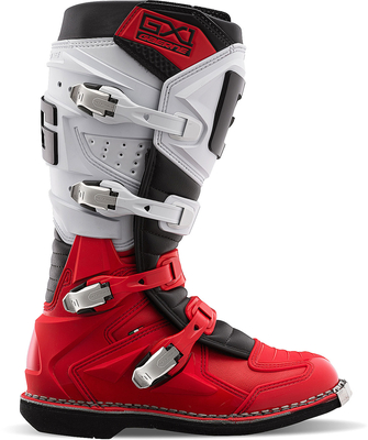 The latest innovative GAERNE GX1 entry-level boots for motocross & off-road combines technology with style & offers maximum safety with highest comfort. The GAERNE GX1 boot is made with special high-quality materials. The new DUAL-TECH ANKLE SYSTEM is unique in this price range & has been completely integrated into the design. This technology provides stability & flexibility & thus prevents over-extension of the foot during back & forth movement as well as twisting. Taking advantage of the technology developed for the high-end SG12, SG10 & Fastback boots, the GX1 combines strong protection features with high levels of comfort. The concept with the 4 interchangeable aluminum buckles provide for a simple, fast & accurate closure. By adjusting the upper two buckles, the calf width can be regulated, thus also space for a knee orthosis. Features High-quality, durable cowhide with plastic protectors DUAL-TECH ANKLE SYSTEM for more safety & flexibility Adjustable calf width...