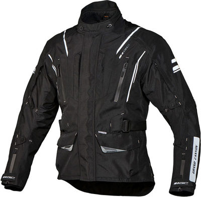 Features 600D polyester, waterproof, windproof and breathable with taped seams Mesh lining with removable soft shell thermal vest 2 outside pockets and 2 inner side pockets, 2 Napoleon pockets behind the zip 5 waterproof outer pockets, 1 is on the back Short connection zipper 3M Scotchlite® reflective strips Adjustable at the arms and waist Ventilation at chest, back and arms Protectors Shoulders: EN1621-1:2012, PU Level 1 Elbows: EN1621-1:2012, PU Level 1 Back: prepared