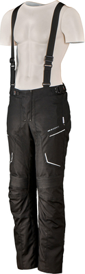 The Grand Canyon Stanton Big Size are weatherproof, high quality textile pants made from 600DN polyester. They have a modern look with a perfect fit. Available in the sizes short, normal & long. In combination with the Grand Canyon Nelson jacket, these pants are the ideal set for touring riders, commuters & passengers. The adjustable suspenders are included as standard. Equipped with 2 waterproof outside pockets, lockable with a zipper. The Stanton trousers have a breathable & waterproof membrane. The thermal lining can be removed by zipper. The wearing comfort is enhanced by the stretch panel at knees & back, the adjustable straps at waist & the raised back. Reflective stripes serve for better visibility. The knee protectors are adjustable in 2 positions. Equipped with a short connection zipper, for combination with a jacket. Zippers on the leg cuffs for easy access. Protectors Knee: EN1621-1:2012, PU protection type B Level 1 Hip: EN1621-1:2012, PU protection type B Level 1 The knee protectors are adjustable, both are removable