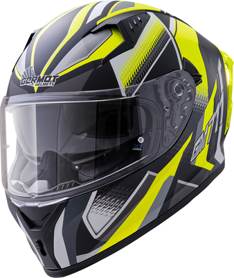 Experience a sporty & intense riding experience on your motorbike with the GM 711 full face helmet. The aerodynamically shaped helmet shell, the spoiler & the modern design make the helmet a good choice for sporty riders. The skin friendly interior ensures a comfortable fit. Features Scratch-resistant visor Pinlock® prepared Integrated sun visor Quick & easy visor change Quick release visor mechanism for fine adjustment of the visor Visor & head ventilation Air outlet at the back of the head Anti-rain profile Double anti-turbulence neck protection Removable windstopper Emergency strap on the cheek pads Skin-friendly, removable & washable inner lining Second short dark-coloured spoiler included in the scope of delivery High-quality multi-layer coating with UV protection Micro Metric helmet fastener Speaker cut-outs for communication systems available ECE 22.06 Material ABS-polycarbonate mix