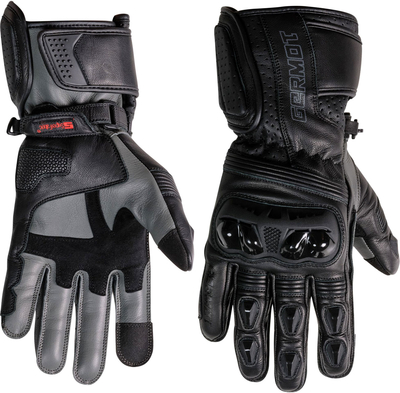 Germot summer glove, Imola. The lightweight & sporty leather glove offers optimum protection thanks to the hard shell protection on the backh&, the protectors on the knuckles & the double layer of material on the palm. The soft leather ensures a comfortable fit. Features Breathable Ergonomically shaped Stretch inserts Perforated leather inserts Elasticated strap Adjustable Velcro fastener Long cuff Safety Hard shell protection on the backhand Knuckle protection Palm reinforcement Palm reinforcement Material doubling Leather Has many positive properties such as flexibility, durability & tear resistance. Polyester Polyester is an easy-care, soft & thin material that is finer than silk. Polyester also retains heat well, dries quickly, is skin-friendly & hard-wearing.