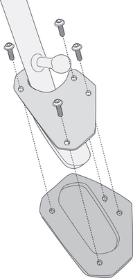 Specific foot extension made of aluminum and stainless steel for the original side stand. Notes GIVI products are designed for vehicles in their original condition. Compatibility with accessories from other manufacturers, such as exhaust systems, etc., cannot be guaranteed and may need to be checked before installation. Some of the images are examples or placeholders.