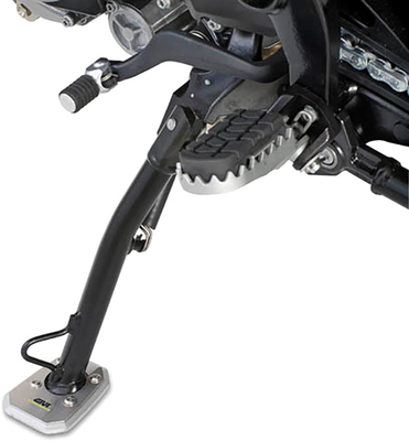 Specific foot extension made of aluminum and stainless steel for the original side stand. Notes GIVI products are designed for vehicles in their original condition. Compatibility with accessories from other manufacturers, such as exhaust systems, etc., cannot be guaranteed and may need to be checked before installation. Some of the images are examples or placeholders.