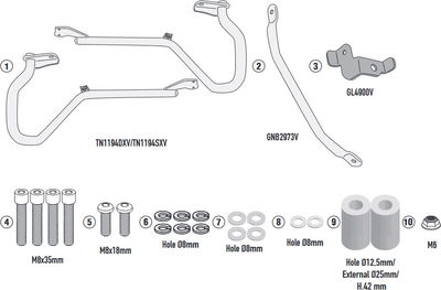 Model-specific crash guards. Features Tube diameter in most variants 25 mm Please note the variant-specific comments/restrictions Important note GIVI products have been developed for vehicles in their original condition Compatibility with accessories from other manufacturers cannot be guaranteed It is recommended that the installation be carried out by a professional mechanic Comments/restrictions Variant Note TN1110 TN1111 TN1121 TN1139 TN1144 not compatible with CRF1000L Africa Twin DCT TN1144OX Stainless steel, not compatible with CRF1000L Africa Twin DCT TN1156 TN1160 TN1162 for Honda CRF1000L Africa Twin DCT TN1162OX Stainless steel, for Honda CRF1000L Africa Twin DCT TN1171 TN1178 Compatible with both DCT & manual transmissions TN1184 TN1192 TN1194 TN1196B TN1199 TN1201 TN1203 TN1208 TN2105 TN2122 TN2128 TN2130 TN2132 TN2139 TN2145 TN2148B TN2158 TN2159B TN2165 TN225 TN3101 TN3105 TN3116 TN3117 TN3125 TN3126 TN3127 TN3128 TN347 TN355 TN358 TN362 TN363 Tube diameter 22 mm TN365... ...