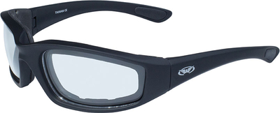 - & nothing worse than getting smacked in the eye by road grit or an insect. That’s why, for decades, Global Vision® has made stylish protective motorcycle eyewear. However & wherever you ride, you ve got a pair that fits you perfectly. Features Shatter-proof polycarbonate lenses UV400 filter for maximum UV protection Scratch resistant coating Matt-black soft touch frames Thick vented EVA foam Rubber ear pads Boxed with microfiber pouch for cleaning & safe storage Lenses transform according to existing lighting conditions Transforms from clear to smoke Fitting for persons with helmet size S-XL