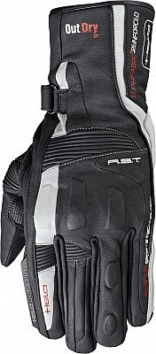 Material Palm made of highly abrasion-resistant kangaroo leather Back of goat leather Colorfast and sweat resistant Lining Lightweight lining Membrane OUTDRY® membrane, special lamination with external glove waterproof, windproof and breathable Comfort/features Velcro on the wrist and cuff Visor wiper Leather stretch inserts on the upper hand, thumb and fingers Security Palm protection with SUPERFABRIC® brand material Ankle protection by SAS-TEC® shell covered with leather Palm / hand edge reinforcement Palm protection underlaid with Schoeller® Keprotec® Palm reinforcement