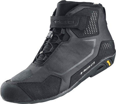 The Held Torrance shoe offers a well-thought-out design and first-class performance! Material Microfiber/textile mix Lining Comfortable polyester lining Comfort/Features Slip, oil and petrol resistant Vibram® brand sole Safety Certified according to the EN 13634:2017 standard "Protective footwear for motorcyclists" Ankle protection Vibram Vibram® is the leading manufacturer of durable and comfortable shoe soles, which have become well known in the mountain boot sector. The shoe soles have outstanding cushioning properties and offer very good abrasion, which is the best prerequisite for EN certification, especially for motorbike shoes. The position, arrangement, shape and height of the Vibram® soles are carefully thought out and always developed for the respective area of use.