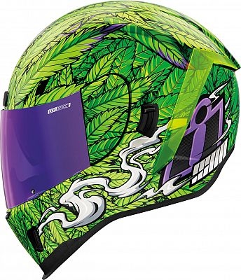 Come down off that tree, & we ll turn you on to that good-good. The Airform Ritemind is back sans eyes & now with that glow-in-the-dark realness. It features a polycarbonate shell, removable Hydradry™ comfort liner, both Fog-Free Clear & violet RST shields, a Dark Smoke internal Drop Shield™, & Dayglo green spoiler. Features Injection molded polycarbonate shell for strength & durability Internal airflow geometry Continuous venting system Sculpted neck roll Fog-Free Icon Optics™ Shield with Rapid-Release™ System Prolock™ positive shield locking system Trac Shield™ shield with tear-off posts available sold separately Internal Dropshield TM with exterior switch The DROPSHIELD™ visor must only be used while the main face shield is in the fully closed position Removable molded breath deflector Removable Hydradry™ 3-piece moisture wicking liner Internal speaker pockets work with Icon s R.A.U. Bluetooth device World Standard Meets DOT FMVSS 218 (US), ECE 22.05 (EUROPE) & PSC (JAPAN) helmet safety standards. Does not ship with PSC certification stickers unless purchased from an authorized dealer in that country. Fit The most common helmet fit type, the Intermediate Oval head is slightly shorter front-to-back & a little wider side-to-side. Venting 4 air intakes & 1 exhaust port are coupled with deep channeling in the interior energy absorbing EPS foam to keep your head cool. Weight A reduced shell profile helps reduce overall weight, while maintaining the exclusive World Standard of ICON to suit your riding style. Exterior Streamlined & race inspired, the Airform hits the street ready for speed. By sculpting the traditional neckline of the Airform it allows your head to slip in & out with ease. The helmet s continuous chinbar venting system allows air to freely flow keeping you cool on those hot riding days. Customize your helmet & colormatch your interchangeable spoiler to your shield for a unique personalized look. Shield The Airform has not one, but two shields. The unique quick-change fog-free Optics shield keeps debris away from your money maker, while the internal interchangeable drop shield has the sun in check. No more swapping shields for cloudy or sunny days. Just reach up, flip the switch, & ride forever. Interior The removable sweat wicking Hydradry™ liner provides a snug & contoured fit. Air from the vents is channeled between the comfort liner & the protective, energy absorbing EPS foam liner to create a nearly perfect rider-focused interior. The airflow works in conjunction with the Hydradry™ liner to effectively reduce heat build up. Combine that with superior venting & a removable breath deflector, which creates a nearly perfect rider-focused enclosure. Note Please be aware, as long as nothing else is written in the item description: All helmets will be delivered only with the ECE certification by default all helmets that have a visor will be delivered with a clear visor, even if it is shown differently.