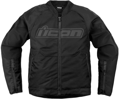 It s an ICON® classic that just keeps getting better. For such an understated design, this jacket says a lot about the person wearing it. The Overlord 3 jacket is a simple textile piece with a durable 1680D & 300D polyester shell reinforced with 300D polyester inner panels. There are D3O® impact protectors on the back, elbows, & shoulders. The stowable Air Fly™ mesh panel in the middle of the front & the ventilated zippered cuffs make it possible to regulate air circulation. Features Tested & Certified According to EN 17092-4:2020 Class A ICON® Sport Fit 1680D & 300D polyester shell additional internal reinforcements made from 300D polyester D3O® Removable Viper back protector – EN 1621-2:2014 T5 elbow & shoulder impact protection – EN 1621-1:2012 Air Fly™ mesh panel in the center of the front Pre-shaped arms & waist adjusters Ventilation openings with zipper on shoulders, sleeves, & back reflective accents ICON® Sport Fit Designed for comfort in an aggressive riding stance with... ...