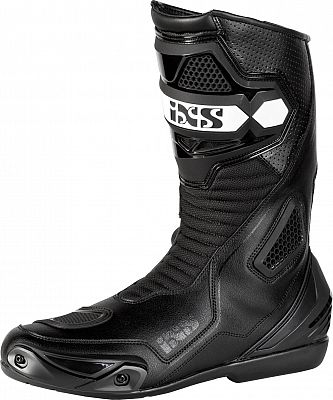 Features Racing boots made of abrasion-resistant, matt cowhide Breathable mesh textile lining Comfort footbed Zipper on the inside for linen straighten entry Width adjustment on the calf with Velcro Padded TPU shin plate with integrated ventilation opening TPU heel counter with integrated ventilation opening TPU molding on the outer ankle for better abrasion protection Replaceable toe sander made of aluminum Plastic inserts on the inner ankle for better abrasion protection Soft accordion stretch over instep and heel for optimal comfort Gear lever reinforcement made of rubber for best grip Abrasion-resistant rubber sole