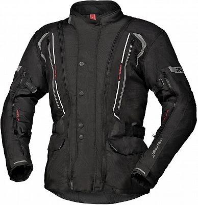 This new IXS Flex-ST jacket is especially flexible in fit due to the new Size-Adjust-System! 2 circumferential zippers from the jacket waistband at the front over the shoulders to the jacket waistband at the back allow a significant increase in width. Now even a thick quilted jacket for the cold days fits under the jacket! So the jacket still fits perfectly even if the thermal lining is removed on hot days. It is flexible for personal weight fluctuations or reduces the jacket width by closing the zipper. Features solto-TEX® 2 layer Z-liner membrane Removeable thermo lining Breathable mesh lining with water barrier for optimal body climate 3D mesh pocket for back protector for enhanced moisture transport Stepless, size regulating system with circulating zippers Width adjustment at the elbow, upper arm & on the cuffs Soft cuffs for best glove comfort Width adjustment in the waist with velcro Width adjustment on the jacket hem with elastic drawstring 4 outside pockets 2 inside pockets in the mesh lining & 2 Napoleon pockets 2-way zip at the cuffs for efficient ventilation 6 ventilation openings Reflective transfer prints All-round connection-zipper Height adjustable elbow protectors Height adjustable shoulder & elbow protectors impac Tec TP-02, certified according to EN 1621-1:2012, Level 2 Back protector impac Tec TP-06, certified according to EN 1621-2:2014, Level 2