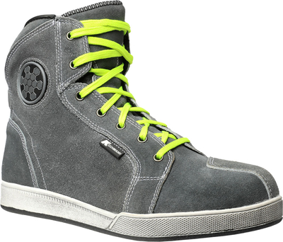 Features Trendy, sporty motorcycle sneaker Lightweight motorcycle shoe Suede leather upper Shaft height ca.16 cm Waterproof & breathable by Hipora climate membrane Gearshift reinforcement Ankle reinforcement inside & outside Safety reflector Laces in 2