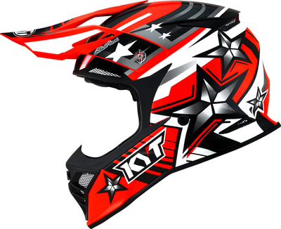 Skyhawk is the last generation off-road Helmet by KYT, made of TRI-fiber composite, in a dynamic and performing shape. The helmet was developed and optimized on the most famous tracks of MX World championship. The performance was raised to the highest level to satisfy the needs of the most demanding riders. Protection, ergonomics, weight and ventilation are the result of extensive research and on-track tests with the best riders. Features TRI-fiber composite shell made of Carbon, Kevlar and Fiberglass Inner lining and comfort cheek pads removable, washable and replaceable, with different thicknesses to ensure the full customization of the helmet Air intakes designed to increase internal comfort Air-flow is channeled through 4 large front vents protected by solid metal mesh