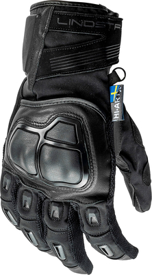 Soft & durable waterproof textile & leather combination glove. Features Hi-tenacy PE flex / goat leather Dryway + functional membrane HI-ART reinforcement in the palm Certified Level 1, EN 13594:2015, with knuckle protection Skinfit XTR, technology that keeps the lining in place NUDUD Touch screen technology for best control with the glove on Dryway+ 2.0®, Dryway+® & Dryway® Dryway+ 2.0, Dryway+ & Dryway are wind & waterproof membranes that keep you dry even in the wettest, windiest weather. The material allows moisture vapor to escape from the inside while keeping wind & rain out. Lindstrands latest functional membrane, Dryway+ 2.0, has a waterproofing value of 10, 000 mm & a 30, 000 gr./m 2/24 h breathability value. Keep in mind that a membrane s function relies upon the difference in humidity between the inside & outside. If an external heat source is applied, such as heated grips or seats, the membrane will work in reverse. HI-ART® HI-ART is a proprietary material, used in especially exposed areas to increase abrasion resistance. It makes leather 200 percent stronger & textiles no less than 500 percent stronger. SKIN FIT A technology used to secure glove linings and/or membranes. Where used, the lining or membrane will remain firmly attached & not follow your hand when removed. NUDUD® NUDUD is a new innovative high precision “touchscreen solution” that means that you can keep your gloves on in all situations, both on & off your motorcycle / snowmobile. The precision is second to none. ...