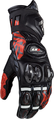 Construction Full-grain cowhide Full-grain goatskin Superfabric Hypalon Features Elastic power-stretch at fingers Large velcro adjustment at forearm Fingers with outer stitching construction Touchscreen capable finger Wrist flap covers with LS2 print Easy-on pullstrap Protection Certified according to EN13594:2015 Level 1 KP Carbon armor on finger Carbon knuckle protection TPR metacarpal protector Carbon slider at palm Innovative TPU protector at forearm Finger bridge for protecting the little Reinforcement at palm & sidewall EVA foam protection at fingers Superfabric reinforcement at palm ...