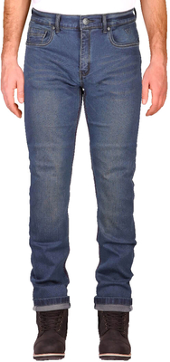 Welcome to the Glenn family: the Glenn Slim motorcycle jeans have a slim fit & precisely because of this Modeka uses ultra-flat SAS-TEC® knee protectors at the knee. The stretchy denim material provides extra comfort when riding or in a seated position on the motorcycle. It goes without saying that these jeans with five pockets are easy to wash. If you roll up the pants, reflective stripes appear. Material 100% KEVLAR® fabric at hip & knee Material tested according to EN 17092:2019 Safety Ultra flat knee protectors SAS-TEC SC-1/KA according to EN 1621-1:2012 Upgradable with hip protector SAS-TEC SC-1/07 Comfort Skinny fit Other Features Reflective tape inside for rolling up