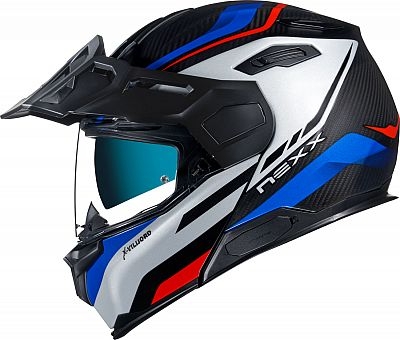 Nexx’s versatile go-anywhere, do-anything off-road Modular helmet. The X. Vilijord sits comfortably at the premium-level of modular helmets, designed to be simple & versatile, to face any upcoming challenge. While most motorcycles helmets often cater for either paved or off-road exploration, the X. Vilijord essentially bridges the gap. Built around luxurious comforts, the off road solutions, the powerful ventilation & excellent fresh air distribution make it the perfect choice for demanding motorcycle Adventure travelers. Features X-MATRIX 2 shell (multiaxial fiberglass, 3D organic fibers, special aramid fibers & carbon reinforcement) Visor with recessed cavity for Pinlock (Pinlock included) Integrated Sun Visor with Ergonomic Button Mechanism PC Lexan Shield Clear with Anti-Fog position & central lock Panoramic Eye Port X-Swift quick-change visor system Aerodynamic design, developed to minimize fatigue on long trips, with the mask closed or open Off Road Peak, aerodynamic & light, designed to provide additional direct air intake & reduce buffeting & vibration at high speed Adjustable & removable peak extensor for best sunlight protection Easy to operate mask button & with involuntarily opening safety mechanism 360º Super Locker with double pivot for maximum mask safety when raised Special developed rubber sealing around the mask & the shield for optimum Acoustic Isolation NEXX X.COM 2 Intercom system prepared, with “ Plug & Play” easy setup Removable Action Camera support on top & side X.MART DRY Fabrics Morfofit – ergonomic fit of the cheek pads 3D Formed Pad, removable & washable Easy Fit for spectacles wear Winter membrane for fresh air flow reduction on cold days Night vision – reflectors on the side, front & back of the helmet Off road chin ventilation designed for a proper use on dust & mud environments Removable Breath Guard Micro-Metric buckle stainless steel 3 shell sizes X-Matrix 2 shell, weight ca. 1735 +/-50 gram Double Homologation Full Face & Jet (P/J) Homologation: ECE 22-05 X-Matrix 2 shell X-Matrix 2 new formula combines advanced multi-direction lay-up & first quality composite materials through six different layers that ensure optimized impact & penetration performance for speed events, compared with any common fiber. This enables us to create an ultralight shell that is tougher, stiffer & stronger but most importantly: provides an impressive high-energy impact management, for a world class protection. Winter Membrane The Winter Membrane allows a better control over the fresh air flow. It can be disabled by folding it on the back part of the inner liner. Connected to the World Designed to offer a natural & intuitive interaction, just talk to have things done or use the simplified 3-button system to control the various functions. X-COM 2 is designed from the ground to incorporate plug-in components, so that battery & wires do not compromise the space or aesthetics of the helmet. A Pair of Extra Eyes Record all your travels & your best moments to remember them later. Practical & removable, two brackets for action cameras come included with the helmet, to facilitate their placement on the top and/or side of the helmet. Off Road Chin Vent For extra fresh air in the chin area. Peak Extensor For Highway or Off-road use, adjustable in movement & no tools required. Peak Off Road design developed to provide additional direct air intake & reduce buffeting & vibration at high speed. Note Please be aware, as long as nothing else is written in the item description: All helmets will be delivered only with the ECE certification by default, even if it is shown differently. all helmets that have a visor will be delivered with a clear visor, even if it is shown differently. ...