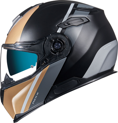- 1 inlet & 2 outlets air-vents Chin ventilation Removable Breath Guard NEXX X.COM 2 Intercom system prepared, with “ Plug& Play” easy setup Removable Action Camera support on top & side Double homologation Full Face & Jet (P/J) Weight: Carbon: 1550 gr. +/- 50 gr. X-Matrix 2: 1625 gr. +/- 50 gr. Homologation: ECE 22.05 Dynamic. Elegant. Robust Style, comfort & performance unite with the essence of Gran Turismo, in a unique Modular, full of technology & solutions that bring you closer to the world that surrounds you. Enter the ultimate comfort zone – where safety meets peace of mind, the journey becomes unique & the pleasure of riding, pure emotion. An incredible Vision on the Road A great experience on the road should encompass the way the motorcycle behaves & the way you feel while riding. This is the reason why we have developed the X-Sensus Vision, our philosophy behind the eye port of all our helmets, which connects you to the journey & the world around you – with opening angles 15% beyond the standard requirements. Visible Solutions The visor is optical class 1, anti-scratch & ready for the use of anti-fog Pinlock lens. It is also equipped with an internal sun visor, filtering 99% of UV light, operated externally with an ergonomic button. The X-SWIFT quick-change visor system makes removal of visor extremely simple & fast. Breathe Deeply Breathe deeply, naturally & in fullness. The generous Air Dynamic System ventilation, featuring two air intakes & two outlets, allows the constant renewal of fresh air inside the helmet & an effective expulsion of the hot air. Comfort for many Miles The materials used enhance the perception of a luxurious interior on board. Three-dimensionally shaped for a perfect fit around the head, the highlights include the cheek pads with anti-noise system, the Morfofit format for a perfect fit on the face or the seamless lining, with multi-channel ventilation that ensures easy distribution of the fresh air & outstanding wearer comfort. All liner parts, including the neck roll are removable, washable & with X-Mart Dry technology – a special treatment fabric that dries twice as fast than cotton. A Sanctuary for thoughts X.VILITUR’s comprehensive soundproofing concept