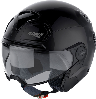 With the N30-4, Nolan has designed a helmet for the new inner city traffic. The all-rounder comes in four versions. The jet helmet Nolan N30-4 T keeps minimalist for the city appearance. The Extreme Ventilation System ensures the best ventilation even when riding slowly. The N30-4 meets the safety standards (ECE 22-06) for motorcycles, but is as comfortable as a bicycle helmet. Features Certified according to UN/ECE 22-06 Microlock chin strap closure Scratch resistant short visor Top ventilation, frontal ventilation, air exhausts Removable Clima Comfort lining with eco-friendly fabric Liner with innovative mesh construction enhanced chin padding for practical use & comfort Chin protector Extreme Ventilation System (EVS) Ring to connect the helmet Water & wind resistant cap (ready for) Lexan™ thermoplastic outer shell 2 shell sizes XXS-L / XL-3XL 5 EPS sizes Microlock² (patented) Availability according to the product version. It is a patented double lever retention system with micrometric adjustment. It consists of a thermoplastic ergonomic opening lever, & of a second aluminium toothed & holding lever. The toothed lever releases the micrometric strip, thus the chin strap can only be open with a very broad rotation of the opening lever. This device minimizes the possibility of unintentional opening of the retention system. “ Clima Comfort” inner padding The inner comfort padding is designed to offer both the typical lightness of a jet helmet & the close fit of a full-face helmet. The chin straps integrated into the liner (which are therefore removable & washable), favor the helmet’s fit as well as its wearability. Note Please be aware, as long as nothing else is written in the item description: All helmets will be delivered only with the ECE certification by default, even if it is shown differently. all helmets that have a visor will be delivered with a clear visor, even if it is shown differently.