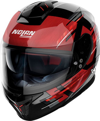 The top of the range road full face helmet, heir to the extremely popular N87. A bold and modern design enhances every detail, from the shell to the air intakes. Features Certified according to UN/ECE 22-06 Microlock chin strap closure Scratch and fog resistant, ultrawide visor Visor mechanism with tilting functionality Pinlock® fog resistant inner visor (inclusive) Adjustable Vision Protection System (VPS) sunscreen - UV protection up to 400 nm Quick release shield system VPS automatic retraction system Top ventilation, chin ventilation, air exhausts Top removable Clima Comfort inner comfort padding with eco-friendly fabric Liner with innovative mesh construction LPC - Liner Positioning Control NERS – Nolan Emergency Release System Cheek pads with removable padding Moulded lining